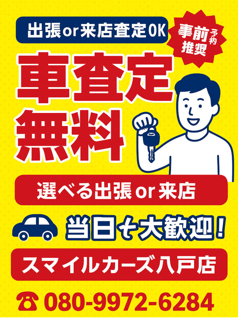 【八戸の車査定はスマイルカーズ八戸店へ】週末は予約がおすすめ!出張査定も0円🚗