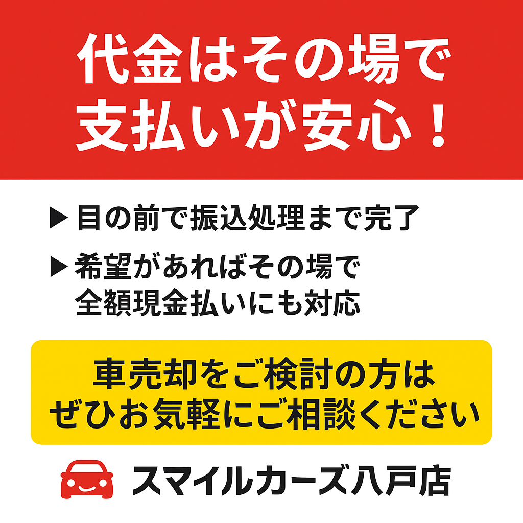 ■ スマイルカーズ八戸店は「その場でお支払い」
