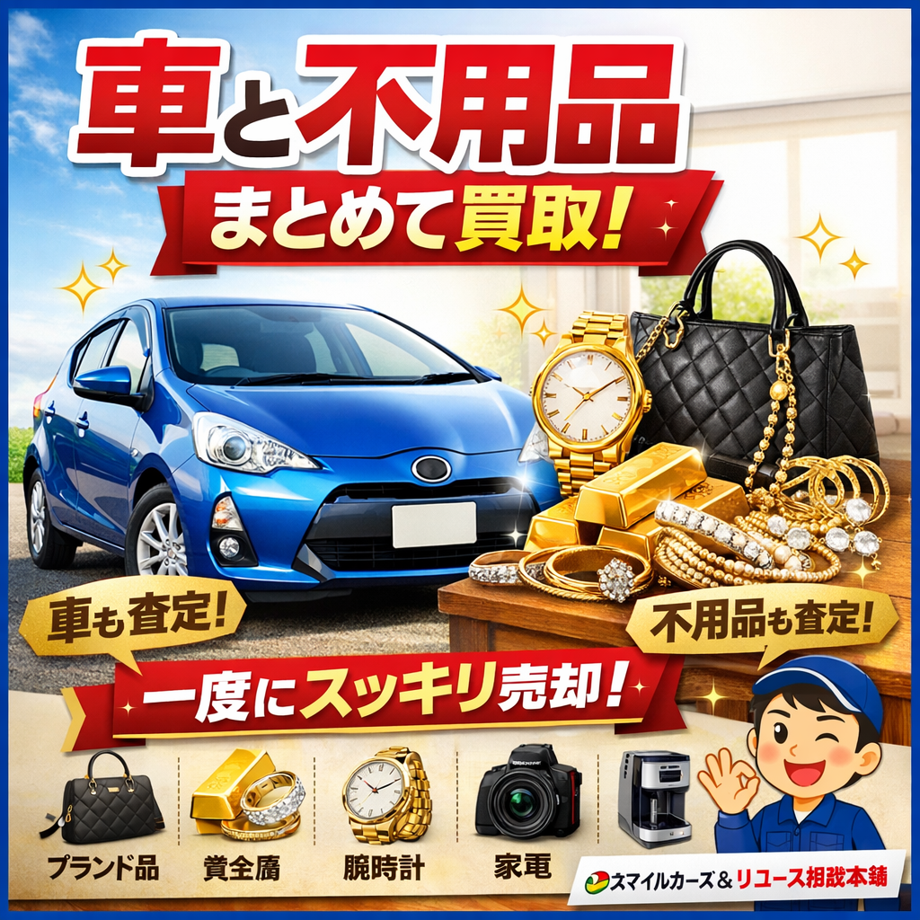 スマイルカーズ八戸店では、車の買取と同時に不用品の査定が可能です。