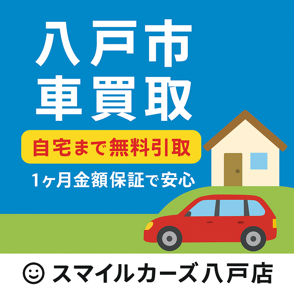 八戸市で車買取を検討している方にとって、自宅までの引取無料や最大1ヶ月の金額保証は大きな安心ポイントです。スマイルカーズ八戸店では、お客様の大切なお車をより高く、そして安心・便利に買取いたします。